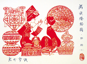 滿族婚俗剪紙《開(kāi)臉》。均為資料圖片