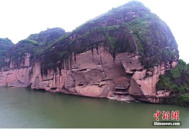 龍虎山崖墓數(shù)以百計(jì),全部鑲嵌在仙水巖一帶的懸崖峭壁之上。仙水巖諸峰峭拔陡險,巖壁光滑平展,巖腳下便是瀘溪河,臨水懸崖絕壁上布滿了各式各樣的巖洞,獨(dú)特的地理環(huán)境是龍虎山崖墓的基本成因。從瀘溪河舟中或地面眺望,隱約望見一個個巖洞口或釘木樁,或封木板,“藏一棺而暴其半者”多處可見。這些崖墓大多是2500多年前春秋戰(zhàn)國時期古越人的崖墓懸棺,其葬位離水面20至50米以上,高的達(dá)到300余米。在大片巖壁上,洞穴星羅棋布,星星點(diǎn)點(diǎn),或高或低,或大或小,數(shù)以百計(jì)。因這些洞穴高不可攀,無人入內(nèi),其中所藏之物,多少年來一直是一個不解之謎。