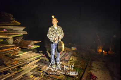 新娘之所以“不落夫家”,一是仍要報答父母的養(yǎng)育之恩;二是舍不得童年伙伴,還要回到寨子里與伙伴們伴做伴,最長可達三年之久;直到同伴都有了對象才分散,新娘方到新郎家長住下去,這樣的奇趣婚俗也在黔東南的一些侗族地區(qū)一直得以保存下來。圖為11月17日凌晨,新郎家派來的娶親隊伍點著火把前來娶親。