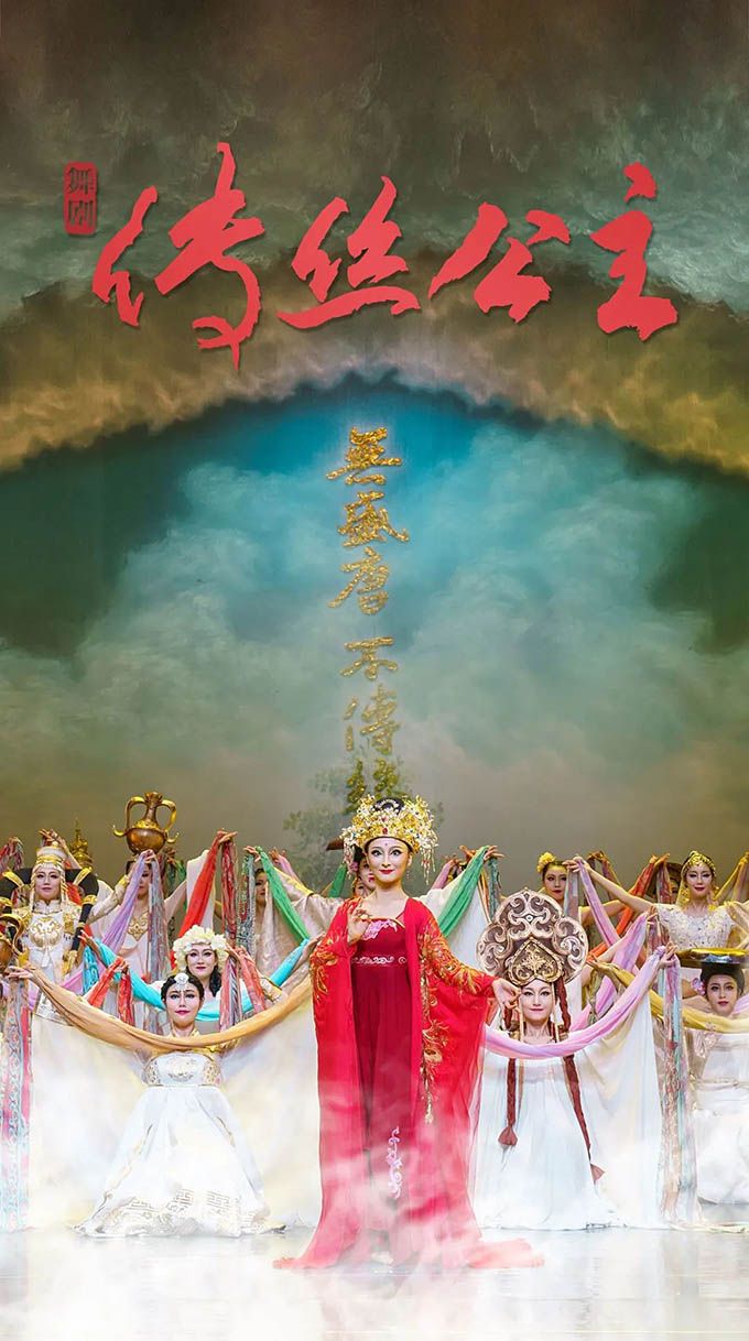《傳絲公主》以唐朝玄奘《大唐西域記》中“瞿薩旦那國(guó)”(今新疆和田地區(qū))一條關(guān)于蠶種西傳的史料記載為依據(jù),以新疆丹丹烏里克遺址發(fā)掘的唐代木板畫(huà)“傳絲公主”的文物遺存為印證,以于闐王子與唐朝公主將東方蠶桑絲綢首傳西域的故事為載體,再現(xiàn)了1300年前我國(guó)各民族文化上兼收并蓄,經(jīng)濟(jì)上相互依存,情感上相互親近,在互鑒融通中匯聚成多元一體的中華民族的歷史。