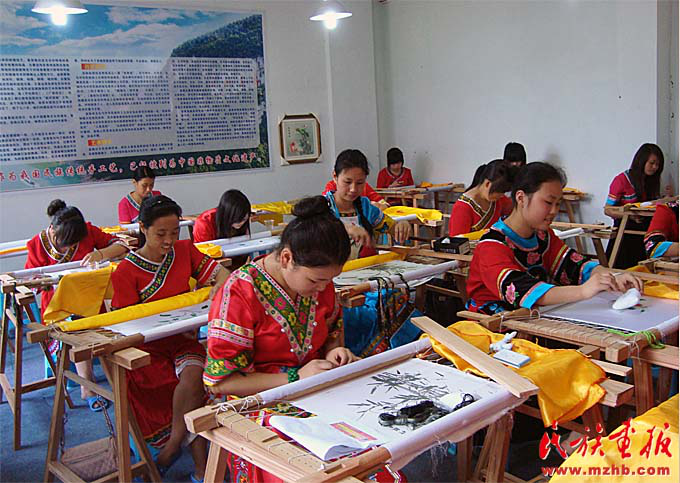 2015年,李紹玉榮獲年度“全國優(yōu)秀農(nóng)民工”。2016年,李紹玉成為重慶非物質(zhì)文化遺產(chǎn)——彭水苗繡的代表性傳承人。從一個(gè)打工女,到回家鄉(xiāng)帶動(dòng)村民致富,再到成為全國人大代表,她說自己深感榮幸和責(zé)任重大。“總理報(bào)告里專門提到‘加強(qiáng)文物保護(hù)利用和文化遺產(chǎn)保護(hù)傳承’,我自己的成長,就得益于此。苗繡是苗族人民古老而美麗的技藝,我們有責(zé)任把它世代傳承下去。我們也要在苗族文化與手工藝術(shù)品融合上下功夫,使傳統(tǒng)工藝與市場(chǎng)結(jié)合、傳統(tǒng)元素與現(xiàn)代時(shí)尚相結(jié)合?!?/p>