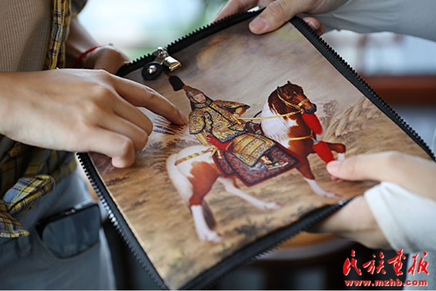 游客對民族工藝品愛不釋手。