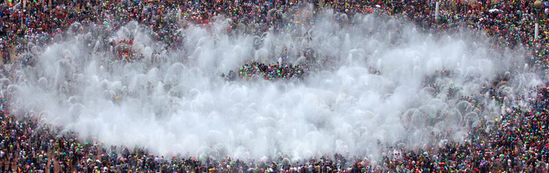 新年潑水是一種禮節(jié),既隆重又熱鬧。除夕那天,人們先到佛寺里,取來最干凈的清泉(江河)水,采來最香的鮮花,把花瓣撒在水中,每人取一瓢,用含著花香的清水給佛像沐浴(象征給佛祖沐?。砬髞砟昶桨?。儀式舉行完后,人們用樹枝和鮮花浸水相互淋灑,以示祝福,口中不斷地說著“薩瓦沙麗”(吉祥安康)“如利京宛”(幸福健康)。對長者只能輕輕地淋灑在肩和背上,表示尊重。到佛寺外和街上,年輕人們就可以潑水狂歡,以示祝福和歡樂。