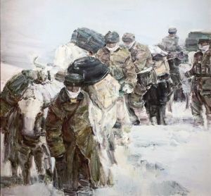 《情系邊防——昆侖衛(wèi)士》 袁志剛 油畫 170cm×160cm 全國美展展出作品、新疆美術(shù)館館藏