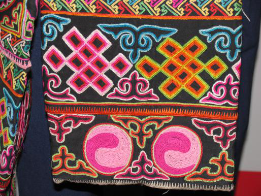 土族的刺繡堪稱一絕,是我國(guó)少數(shù)民族刺繡藝術(shù)中的一朵奇葩。土族刺繡所用的布料有絲綢、斜紋布、條絨布、自制手紡棉粗布、絨毛布等,為襯托色彩絢麗的線繡圖案,布料顏色以黑、紅、藍(lán)三色為主。繡線有棉線、絲線、銅絲線和金銀捻線等。常用的繡法有平繡、盤(pán)繡、鎖繡、切針繡、剪貼繡等。土族的刺繡品種多樣,構(gòu)圖飽滿,色彩艷麗,多用在腰帶、衣領(lǐng)、筒袖、鞋面、煙袋等衣物和裝飾品上?;ブぢ橐粠У耐磷迥星嗄晷厍按蠖加袎K四寸方連續(xù)圖案,叫“富貴不斷頭”。土族女子到七八歲就開(kāi)始跟著母親、姐姐等學(xué)習(xí)刺繡藝術(shù),等到了十七八歲就練就出一手好針線活了。到了節(jié)慶集會(huì)的時(shí)候,土族婦女會(huì)拿出自己的刺繡精品,展示自己的刺繡藝術(shù)。未婚姑娘非常珍愛(ài)自己的刺繡品,如果有哪位小伙得到了姑娘的刺繡品,就相當(dāng)于得到了她的芳心(劉軍供圖)。