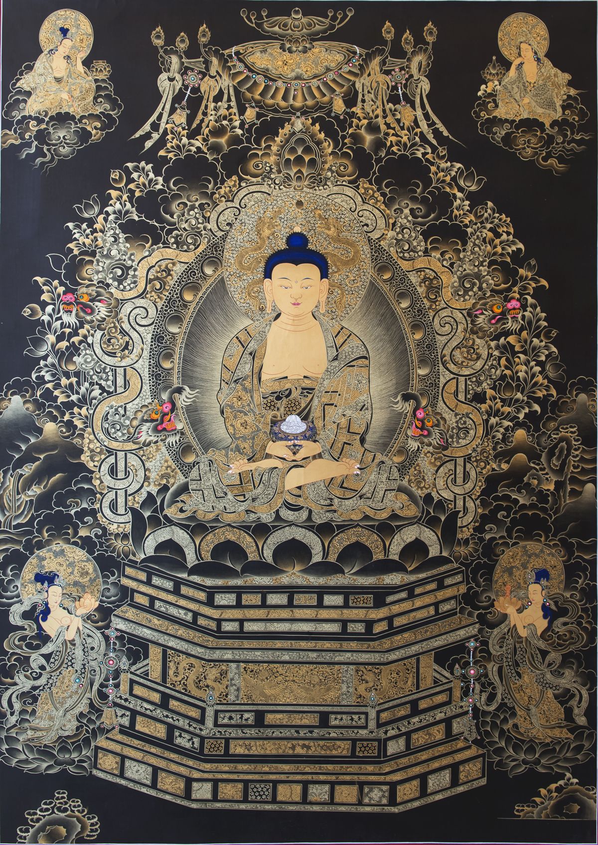 阿彌陀佛(梵語Amitābha),又名無量佛、無量光佛、無量壽佛等。大乘經(jīng)載,阿彌陀佛在過去久遠(yuǎn)劫時(shí)曾立大愿,建立西方凈土,廣度無邊眾生,成就無量莊嚴(yán)功德,為大乘佛教所廣為崇敬和弘揚(yáng)。大乘佛經(jīng)主要如《無量壽經(jīng)》、《阿彌陀經(jīng)》、《觀無量壽佛經(jīng)》,對(duì)阿彌陀佛及其西方極樂世界均有詳述。大乘佛教流傳之地,如中國、日本等大乘教區(qū),阿彌陀佛信仰也尤為繁盛和重要。而漢傳佛教的凈土宗,則完全以往生阿彌陀佛的西方凈土作為專修的法門。