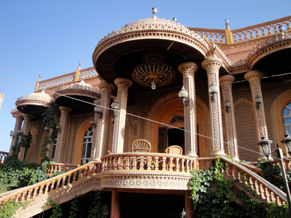 維吾爾族的建筑物有其獨(dú)特風(fēng)格。房屋方形,有較深的前廊;室內(nèi)鑿壁龕,并飾以各種花紋圖案。舊式房屋多系土木結(jié)構(gòu),窗子較小,房頂開(kāi)一個(gè)窗,通風(fēng)采光差;室內(nèi)進(jìn)門(mén)有一連灶土炕,用來(lái)做飯取暖。平房一般比較講究寬敞明亮通風(fēng)。廳室布置整潔樸雅,四壁呈白色泛藍(lán),掛的壁毯,靠墻置床,被褥均展鋪于床罩或毛毯之下,床上只擺設(shè)一對(duì)鏤花方枕。室中央置長(zhǎng)桌或圓桌,家具及陳設(shè)品多遮蓋有鉤花圖案的裝飾巾,門(mén)窗掛絲絨或綢類的落地式垂簾,并襯飾網(wǎng)眼針織品。地面多裝飾民族圖案。維吾爾族人喜歡在庭院中種植花卉、果樹(shù)和葡萄,整個(gè)環(huán)境顯得雅靜、清新。