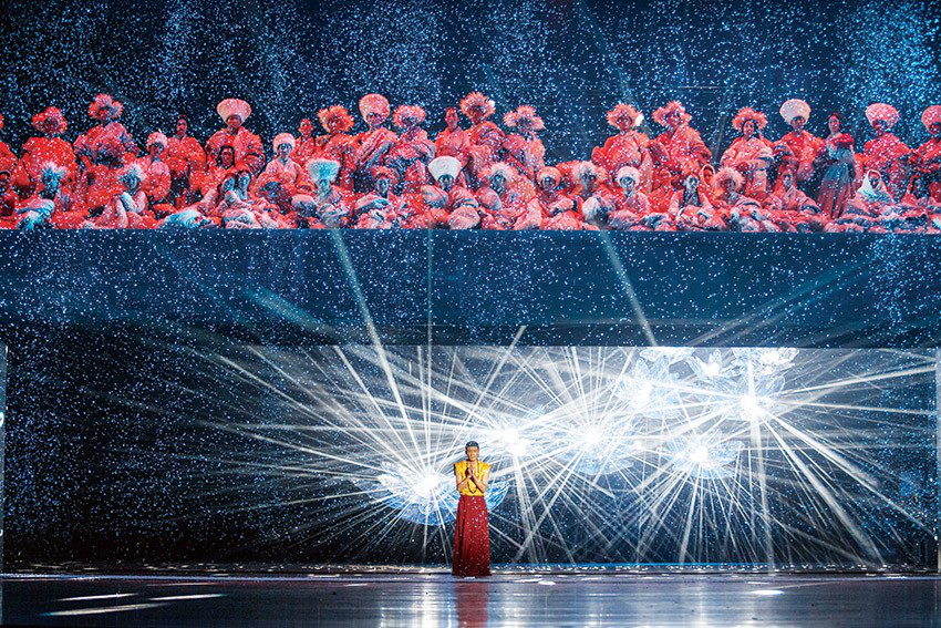 為何我們會(huì)記住倉(cāng)央嘉措?無論你是否到過西藏,你看了這部舞劇后最終都會(huì)明白,因?yàn)樗且晃粍?dòng)人心魄的情僧。他的情詩,亦是情花,遍灑在這片土地上,令繁花盛開,情緣流長(zhǎng)。我們難以忘懷的不是這位達(dá)賴?yán)飩髌娴纳矸荩撬麑?duì)家鄉(xiāng)深深的眷念,對(duì)情愛的難以割舍。歲月無情亦有情,它做了時(shí)間的信差,傳遞了300年前的故事。面對(duì)情感,無論多么堅(jiān)強(qiáng)的心都會(huì)變得柔軟。所以每一個(gè)讀過倉(cāng)央嘉措詩歌的人,都會(huì)陷入那濤濤的情海里難以自拔。