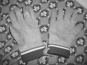 巴拉杰依縫制的鹿皮手套。