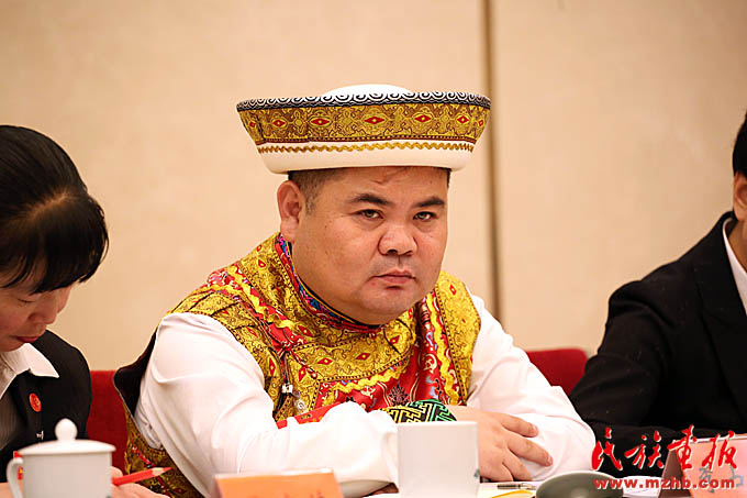 十九大代表、青海省互助土族自治縣林川鄉(xiāng)黨委書記李占魁(土族)在青海省代表團(tuán)討論會上發(fā)言 (滕俊 攝影)