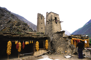 震前,理縣桃坪羌寨的千年碉樓