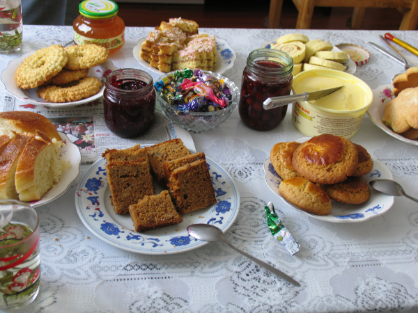 中國(guó)俄羅斯族的飲食文化既保留了傳統(tǒng)俄羅斯人的飲食特點(diǎn),也吸收借鑒了其他民族飲食文化的精髓。透過俄羅斯族的一日三餐,我們便可以窺視出俄羅斯人遷居中國(guó)之后其飲食文化的變化,俄羅斯族早餐一般是傳統(tǒng)俄羅斯面包抹黃油,喝熱牛奶;午餐為面包和菜;晚飯一般比較豐富,會(huì)吃抓飯、拉條子、米飯和炒菜。