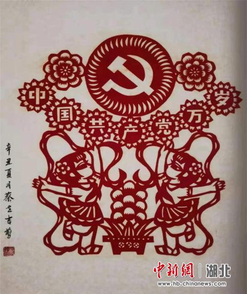 在中國共產(chǎn)黨成立100周年之際,棗陽市非物質(zhì)文化遺產(chǎn)傳承人蔡世吉,以紙、刀、剪等工具,創(chuàng)作出一幅幅精美絕倫的剪紙藝術(shù)作品,謳歌黨的豐功偉績,表達(dá)對祖國繁榮富強(qiáng)的美好祝愿。