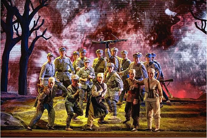 毛主席曾總結(jié)說(shuō):“長(zhǎng)征是宣傳隊(duì),它向十一個(gè)省內(nèi)大約兩萬(wàn)萬(wàn)人民宣布,只有紅軍的道路,才是解放他們的道路。”“長(zhǎng)征又是播種機(jī),它散布了許多種子在十一個(gè)省內(nèi),發(fā)芽、長(zhǎng)葉、開花、結(jié)果。”六盤山是紅軍長(zhǎng)征途經(jīng)的最后一座大山,當(dāng)劇中覺(jué)醒的眾鄉(xiāng)親唱道:“六盤者青松濤聲歡,沖上了五彩的云端,一支(哈)人馬喊聲亮,震顫了百姓的心坎,黑暗中點(diǎn)燃希望的火”,六盤山這個(gè)紅色地標(biāo)被再次點(diǎn)亮!