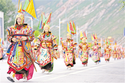 2017年7月24日下午,一場(chǎng)名為“瀟灑的康巴人”玉樹風(fēng)情巡游在玉樹藏族自治州州府玉樹市街頭上演。來自玉樹州一市五縣的康巴藏族兒女或馭駿馬、或盛裝、或歌舞,以行走巡游的方式展示當(dāng)?shù)鬲?dú)具特色的民族民俗文化。各縣巡游隊(duì)伍從感恩廣場(chǎng)出發(fā),途徑結(jié)古大道、民主路,最終到達(dá)玉樹軍分區(qū),沿途圍滿了觀看的群眾和游客,據(jù)悉,此次巡演在玉樹州尚屬首次。
