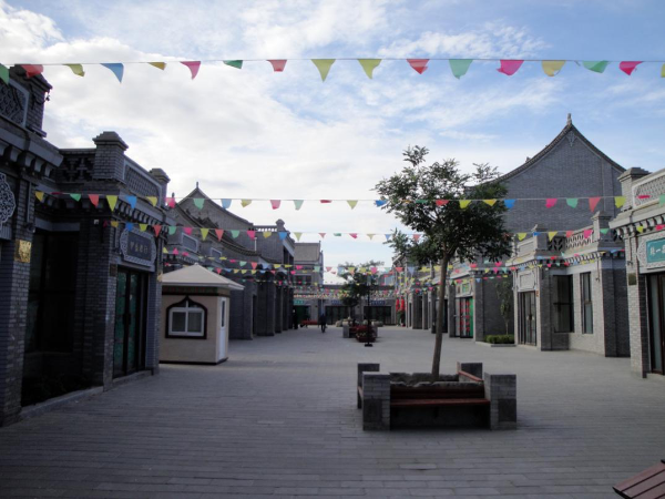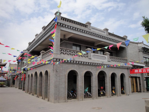 中華回鄉(xiāng)第一街位于永寧縣納家戶北側(cè)。該項(xiàng)目以納家戶清真大寺為中心擴(kuò)展門前廣場,以廣場為中心向北,直北長380米,東西寬107米,占地面積93.78畝,建筑面積1.6萬平方米,建成商鋪177套。所有建筑遵循當(dāng)?shù)鼗刈宓慕ㄖL(fēng)格,采用青磚砌筑,尤其在細(xì)節(jié)處理上用符號、色調(diào)與裝飾來表現(xiàn)回族建筑的精髓。雕梁畫棟,飛檐四出,并且在墻壁、牌坊、檐口、山墻等處運(yùn)用了大量磚雕、伊斯蘭花飾等將伊斯蘭文化藝術(shù)與中國傳統(tǒng)建筑風(fēng)格有機(jī)的結(jié)合在一起,為景區(qū)增加了濃郁的歷史文化氛圍。該街道由北向南依次分為土特產(chǎn)區(qū)、民俗文化區(qū)、旅游紀(jì)念區(qū)、餐飲區(qū)、配套商業(yè)區(qū)五大功能區(qū)。