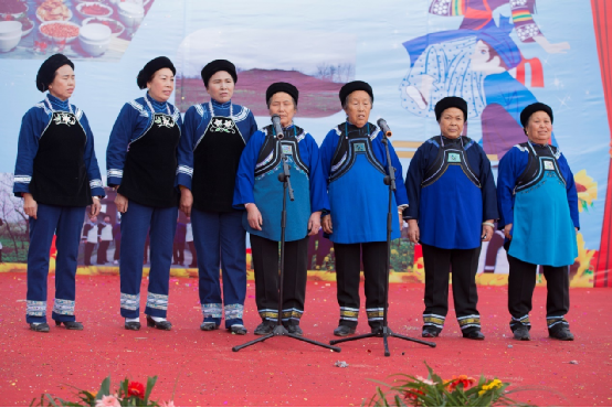 扁坡村“三月三”隨著社會的進步,活動的重心逐漸向民族文化等歌舞表演形式轉(zhuǎn)移,但布依族從古至今都是一個注重農(nóng)耕文明的民族,他們對于大地的熱愛,無以言表卻在歌舞中流露著民族的敬仰之情。阿婆們穿著質(zhì)樸的民族服飾,深藍的衣裙襯得她們莊重又從容,唱著那布依老歌,仿佛家中的老奶奶坐在長椅上溫柔地向孩子們訴說過去的種種。