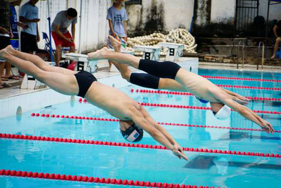 廣西大學(xué)體院學(xué)子參加第四十七屆校運會游泳比賽
