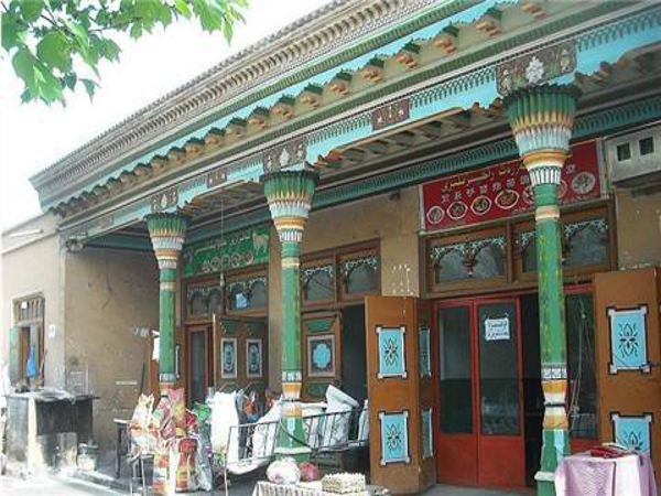 多用虛實(shí)對(duì)比,重點(diǎn)點(diǎn)綴的手法,喜歡采用磨磚拼花、石膏花、彩畫、磚雕、木刻等裝飾,裝飾圖案以及窗欞花飾,多為花草或幾何圖形;門窗口多為拱形;色彩則以白色和綠色為主調(diào),表現(xiàn)出伊斯蘭教的特有風(fēng)格。