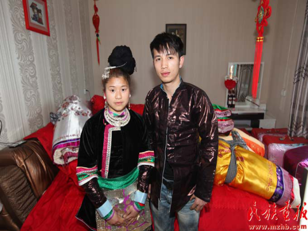 新郎潘好生和新娘陳騰慧在洞房合影