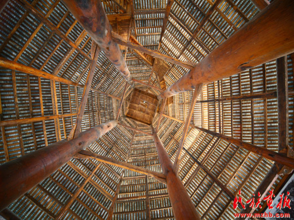 在侗鄉(xiāng)世代相傳這樣一個傳說,從有侗族村寨開始,就有了鼓樓。侗寨鼓樓一般按族姓建造,一個族姓造一座鼓樓。如果一個侗寨有多個姓氏,那么一寨之中就會矗立幾座鼓樓。鼓樓是侗族建筑藝術的結晶,它們由侗族自己的能工巧匠自行設計。無論多復雜都沒有圖紙,全憑師傅一根竹竿、一把木條來把握。把一根竹竿剖成兩片,每一個木枋、每一個洞眼都記在竹竿上,那些符號只有侗族的木匠師傅才認得。