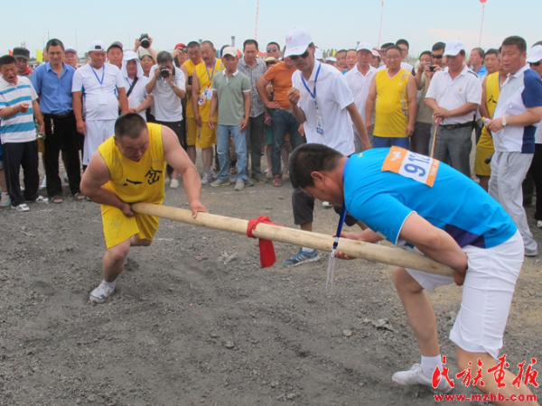 頂杠是赫哲族傳統(tǒng)體育項(xiàng)目,節(jié)日活動(dòng)期間舉行了頂杠比賽