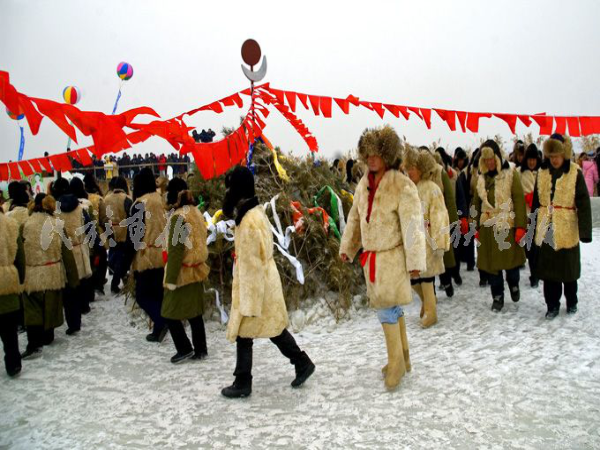 “祭湖”儀式的場面非常壯觀,并帶有幾分神秘的色彩。按照歷代沿襲下來的習俗,查干湖漁獵必須由當?shù)氐?高望重的“魚把頭”主持儀式,舉行祭祀湖神,喚醒冬網(wǎng),祭拜天父地母,保佑萬物生靈永續(xù)繁衍,百姓生活幸福安康。在冰面上,擺放糖塊、炒米、水果、奶干等供品,點燃香火、炭火鍋,進行誦經(jīng)祝辭,祝愿漁獵平平安安,多出 魚出好魚。