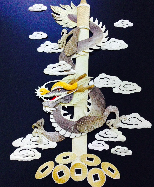 制作魚皮畫,首先必須對魚皮進行加工處理。手工費時大約3天,要經(jīng)過剝制,晾干去鱗、晾曬魚皮、捶熟、漂色等許多細致環(huán)節(jié)。魚皮畫分為粘貼和鏤刻兩種。粘貼畫制作相對來說較為容易,先勾勒出初稿,然后選好底襯,再選適當(dāng)?shù)聂~皮進行剪制。這一步驟特別重要,首先要確定要粘貼的部位,來選則魚皮的顏色,剪完之后,就可往底紙進行粘貼了,一幅魚皮畫也就完成了。內(nèi)容一般生活方面的事物,還有動物、人物等等。魚皮鏤刻是先選好魚皮,一般都是選擇比較大的魚皮,有陰刻和陽刻兩種,在魚皮的反面進行勾畫(也可直接剪制 ) 經(jīng)過剪刻完成。