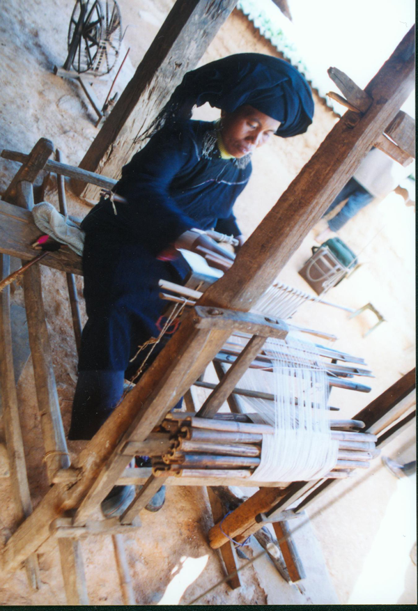 ?。?)紡織。布朗族婦女善于紡織,多在閑暇時間進行。紡織原料有棉花、苧麻和葛線麻等數種,以紡織棉布為主。這些布用來縫制上衣、筒裙、背帶、布袋、裹腳布等。紡織品種有斜紋布、平布和彩錦。布的質地厚實耐穿,深受本族人喜愛。有的地區(qū),人們多半使用水平織機,紡織技術更進了一步。近十年來,由于價廉物美、品種齊全的化纖紡織品大量銷售,傳統(tǒng)的紡織技術受到了沖擊,一些布朗族婦女已經不紡紗織布。