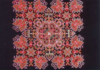 侗族刺繡工藝流行于湘、桂、黔三省交界處的侗族聚居區(qū)。圖案紋樣多取材于自然景物,如花、鳥、魚、蟲之類。畫面生動活潑,色彩明麗。