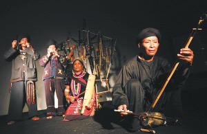 佤族人聚居在云南省西盟佤族自治縣,他們世代敬山敬樹。9月11日,4名佤族農(nóng)民從西盟縣司崗里村來到北京,在著名的798藝術(shù)區(qū)尤倫斯當(dāng)代藝術(shù)中心唱起了“古歌”,用自制的樂器和原始的舞步,演繹著他們自己的生活、勞作和儀式。