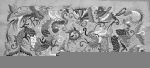 此外,還有一些苗繡圖案反映了歷史事件,比如貴州省博物館在上世紀80年代從一名苗族婦女手中征得一件上世紀50年代做成的苗族女服。令人驚嘆的是,經(jīng)考證,該衣的袖片圖案取材于一段真實的歷史——1855年張秀眉領導苗族農民在臺拱起義的歷史事件。