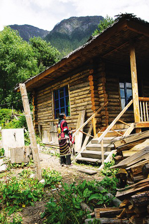 2006年,當(dāng)我再次出現(xiàn)在珞巴族小伙兒達(dá)瓦面前時(shí),他簡(jiǎn)直無法相信眼前的事實(shí),只是站在一步之遙的地方,默默地朝我笑著,笑容略帶羞澀。我問:“還記得我嗎?”他點(diǎn)點(diǎn)頭說:“你真的來了?!比缓蠼又f:“我們一起去看群宗(達(dá)瓦的妻子)吧!”于是,我跟著達(dá)瓦走進(jìn)了密林深處的西藏自治區(qū)林芝地區(qū)米林縣南伊珞巴族民族鄉(xiāng)的瓊林村。