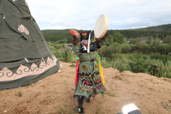 鄂倫春族薩滿舞表演。方征攝于新生鄉(xiāng),2013年8月