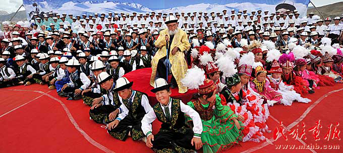 一部悠長、渾厚、動人的英雄史詩,一頂象征高山雪峰的白氈帽,一把古老的三弦彈撥樂器庫姆孜,以及五彩繽紛的刺繡、花氈,灑落在草原深處的氈房,千百年來,古老的帕米爾高原不僅孕育了雄偉挺拔的山川和茫茫無垠的戈壁,更積淀了源遠(yuǎn)流長、絢麗多彩的歷史和文化。