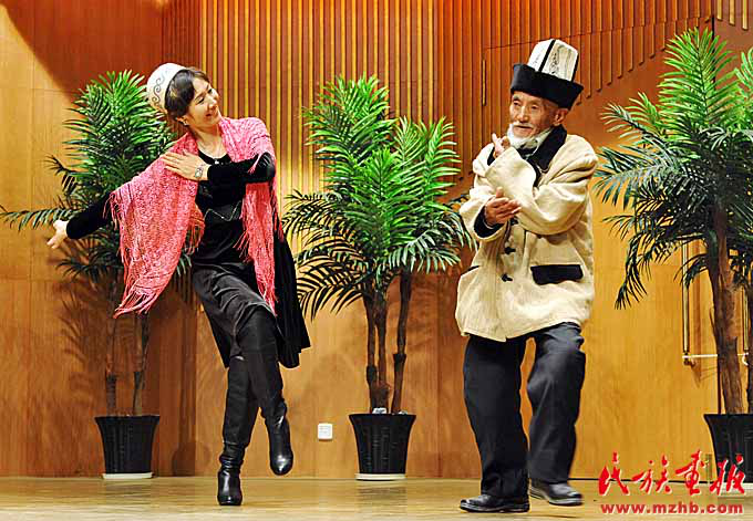 群眾和瑪納斯演唱大師居素甫·瑪瑪依同臺表演