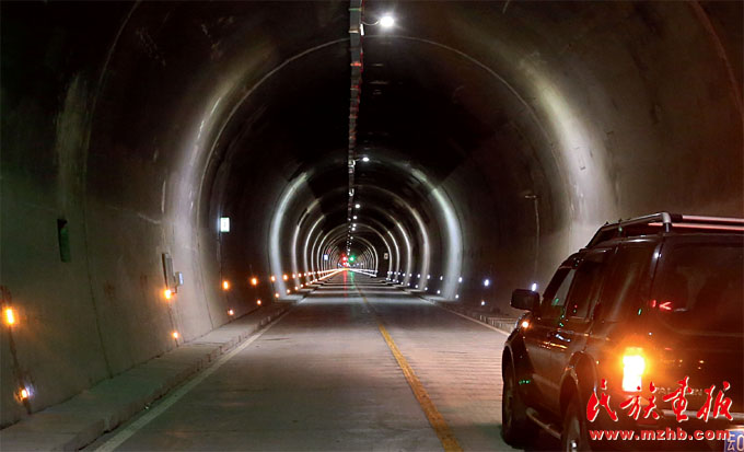 駛過燈火通明的隧道,穿越高聳的大山只用了不到十分鐘的時間,隧道拉近了獨龍江與外界的距離(和勇 攝影)