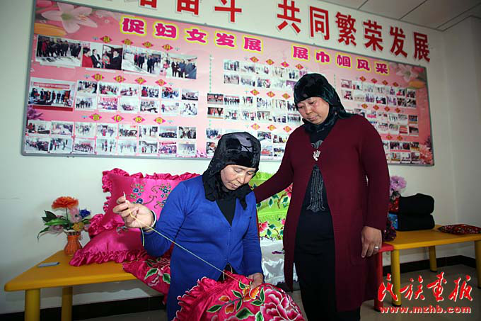 東鄉(xiāng)縣婦聯(lián)開(kāi)展的手工編織技能培訓(xùn)使更多東鄉(xiāng)族婦女利用刺繡等一技之長(zhǎng)增加了家庭收入(胡發(fā)偉 攝影)