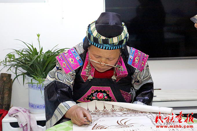 寧曼麗是安徽人,2008年她經(jīng)營的紡織外貿(mào)生意遭到挫折,她到凱里意外發(fā)現(xiàn)了蠟染,她深深地被這種原生態(tài)的、充滿魅力的蠟染工藝吸引。三個月后就在丹寨開了公司。如今寧曼麗采取“公司+基地+農(nóng)戶”的模式發(fā)展生產(chǎn),每年都有來自世界各地的訂單。寧曼麗和她的寧航蠟染有限公司一方面保護了傳統(tǒng)、傳承了技藝,另一方面又解決了就業(yè)、提高了農(nóng)民收入。