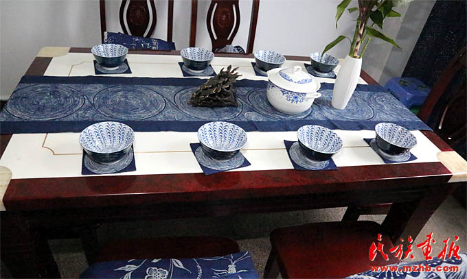 楊文斌老師和她的夫人梁定芳老師都是“非遺”傳承人?,F(xiàn)在他們忙著著書、講學、開研討會。談起蠟染、談起民族民間工藝,楊文斌老師滔滔不絕:“現(xiàn)在要從三個方面認識和研究民族民間工藝:一是從歷史學、人類學、民族學的角度解讀,二是從審美學、藝術視覺理念的角度解讀,三是從工藝學、材料學、技藝學的角度解讀?,F(xiàn)在植物染料的加工和染色技藝消失得很快。老祖宗留下的寶貝到我們這代可不能扭曲和斷裂?!?/p>