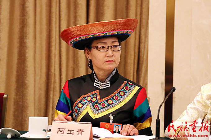 “頭戴織錦大圓帽,腰系花帶,身穿七彩袖的黑底長裙,阿生青作為人口較少民族土族的代表,這一身別致的服飾在十三屆全國人大一次會議青海團的代表中頗為亮眼。她來自青海省互助土族自治縣高寨鎮(zhèn),2016年8月,習近平總書記曾到互助縣班彥村考察異地搬遷項目,班彥村因此變得有了名氣,作為高寨鎮(zhèn)副鎮(zhèn)長,她喜歡與別人分享這個村子的故事。事實上,班彥村只是當?shù)胤鲐毠灾挟惖匕徇w項目的樣板村,縣里諸多其他扶貧項目在近幾年也開始發(fā)力,生態(tài)旅游、特色產(chǎn)業(yè)、養(yǎng)殖扶貧等項目如今已經(jīng)依托各村實際,發(fā)展得紅紅火火,土族百姓的好日子正在翻開嶄新的一頁。