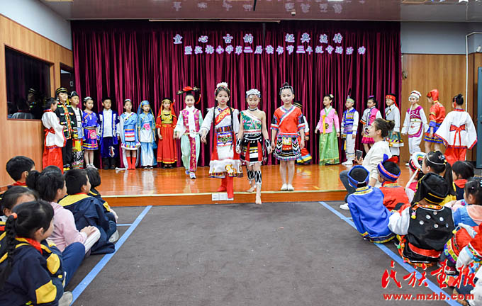 同一天下午,一場精彩的T臺秀在上海市閔行區(qū)梅隴鎮(zhèn)弘梅小學上演。小學生們身著民族服裝亮相,動感的音樂、精彩的表演,將“民族團結(jié)一家親”的理念演繹得生動活潑。學校布置的民族文化墻上,展示了我國56個民族的風土人情,營造了多姿多彩的民族文化氛圍,讓民族特色文化陪伴在學生身邊。