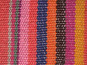 北京服裝學(xué)院民族服飾博物館藏花腰傣彩色織錦腰帶細節(jié)。