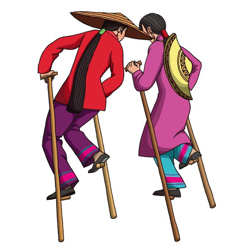 京族(高蹺):京族有18915人,聚居在廣西防城市的澫尾、巫頭、山心三島。京族傳統(tǒng)競技活動多與濱海文化生態(tài)環(huán)境有關(guān),傳統(tǒng)體育項目有捉活鴨、摸鴨蛋、跳竹杠、舞花棍、頂頭、捉貝、走田、趕狗占窩等。