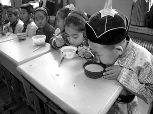 圖為孩子們在上傳承民族文化特色展示課。奶茶原為中國北方游牧民族的日常飲品,至今已有千年歷史,蒙古奶茶至今仍然是日常飲用及待客的必備飲料。陳巴爾虎旗民族小學(xué)開展了具有濃濃的民族風(fēng)味的實踐活動課,通過一起熬制奶茶,學(xué)生和家長、老師們都受益匪淺。