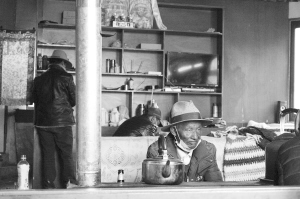 午后,茶館里的年輕人逐漸散去。一位藏族老大爺坐在火爐邊,不言不語,與茶館熱鬧的景象形成鮮明對比。他的老伴去世了,子孫也不在身邊,一個人的家總比不上茶館里熱鬧。可到了茶館后,又開始想念安靜的家。