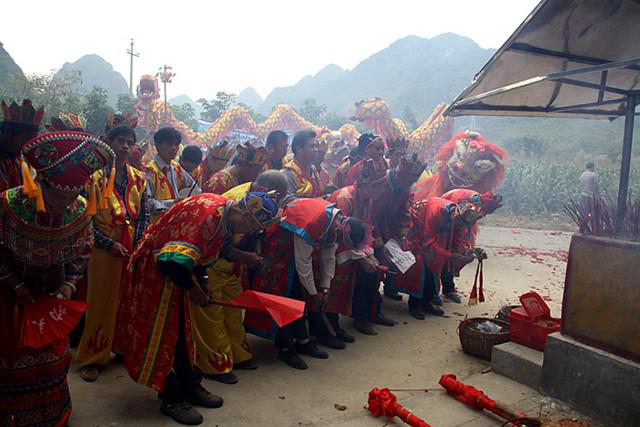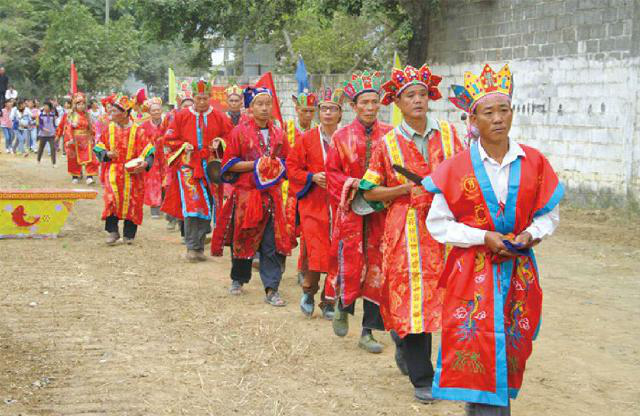 在酬謝自然之神后,由祭司念誦祭文,紀(jì)念民族英雄瓦氏夫人,頌揚(yáng)瓦氏夫人率領(lǐng)將士打擊倭寇的英雄事跡,傳授民族歷史知識(shí),宣揚(yáng)保衛(wèi)家園、謀求平安的民族精神。