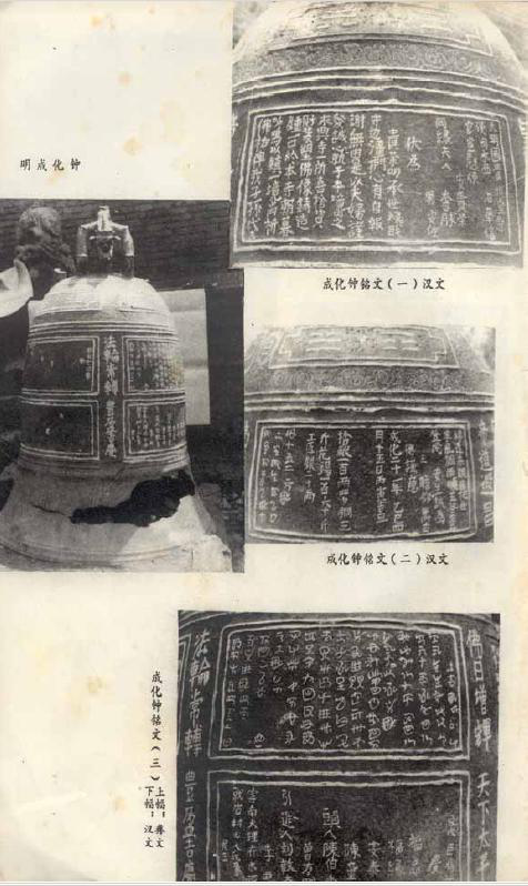 1982年,貴州省大方縣文物工作者在大方縣城關(guān)小學(xué)內(nèi)發(fā)現(xiàn)成化鐘。因鐘面彝漢文均注明此鐘鑄造于明成化二十一年(1485年),故稱(chēng)之為“成化鐘”或“明成化鐘”。鐘面為彝漢兩種文字銘刻,彝文130字,是目前發(fā)現(xiàn)的唯一寫(xiě)有紀(jì)年款識(shí)的彝文銘文。文字書(shū)寫(xiě)嚴(yán)謹(jǐn),布局整齊。