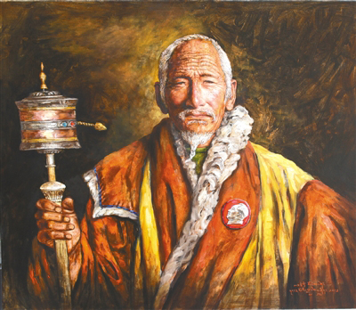 “我曾遇到過民主改革后重獲新生的翻身農(nóng)奴,他們的經(jīng)歷非??部?。對于他們來說,對給予他們自由的毛主席有著很深的感情。老一輩翻身農(nóng)奴為表達感激之情,便有了佩戴毛主席像章每天做祈禱的人?!彼髀峄貞浿敵趵L畫《永遠的懷念》這幅作品時的情景。