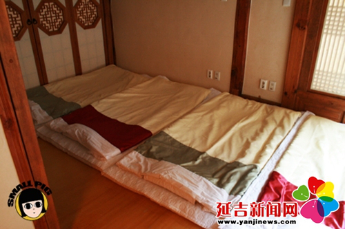 炕是朝鮮族家庭室內(nèi)活動的主要場所,吃飯時女主人會將食物都擺放在低矮的小餐桌上,搬到炕上全家人席炕而坐,盤腿圍坐一起吃飯。到了晚上,人們還是會在炕上鋪上被褥睡覺。因為炕是一家人重要的活動場地,所以勤勞干凈的朝鮮族婦女,每日清晨都會以“擦炕”開啟一天的勞動模式。